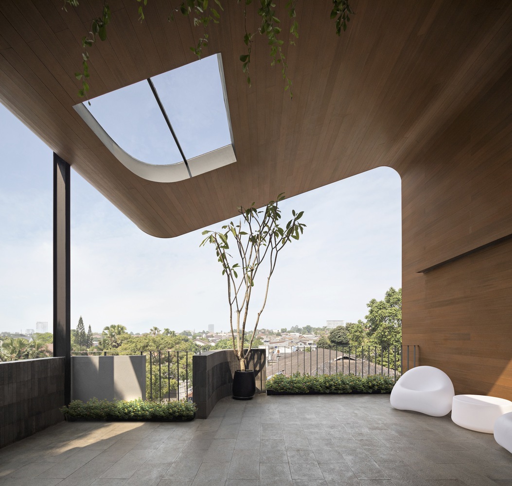 Tọa lạc tại Prapatan (Indonesia) trên khu đất rộng hơn 500 m², ngôi nhà ba tầng gây ấn tượng bởi thiết kế độc đáo: khu vườn không nằm ở sân sau như thói quen của nhiều gia đình Đông Nam Á, mà được đưa hẳn lên tầng thượng.