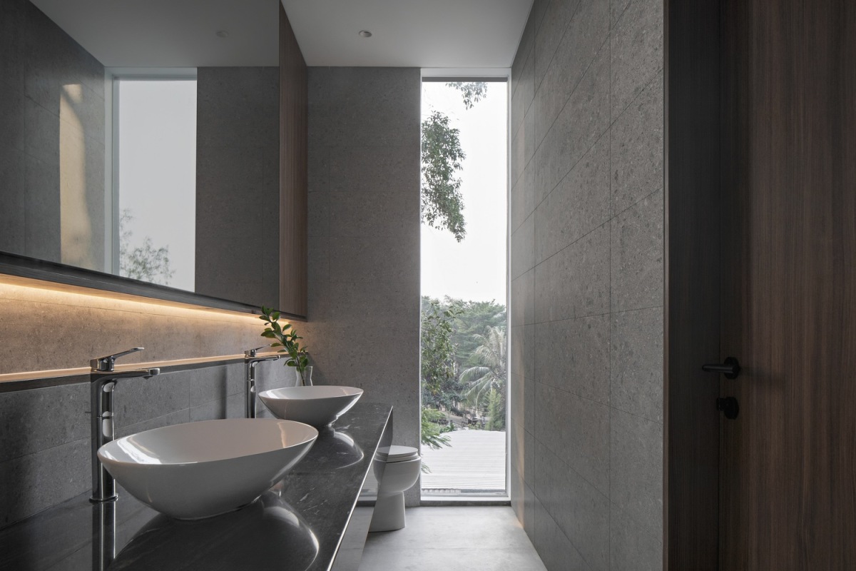 👉 Ngoài ra, phòng vệ sinh và phòng ngủ phụ đều tận dụng giải pháp lấy sáng tự nhiên để tiết kiệm năng lượng, tạo cảm giác thoải mái.
