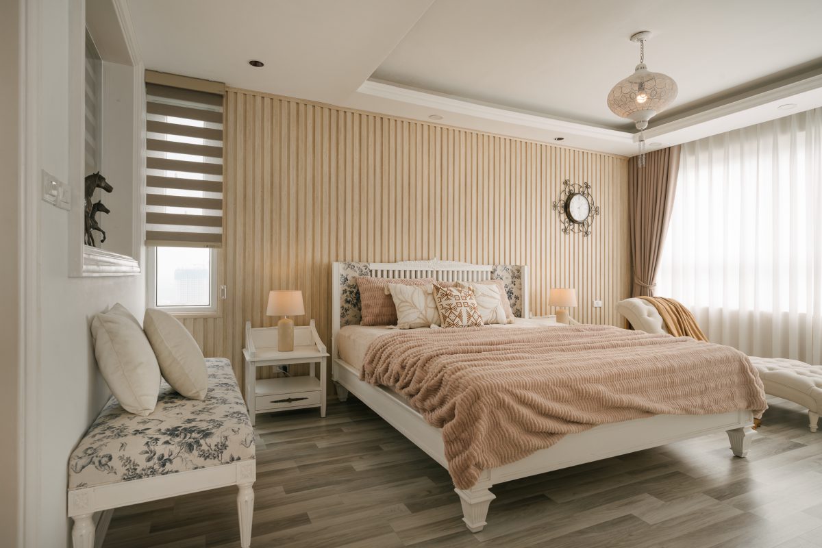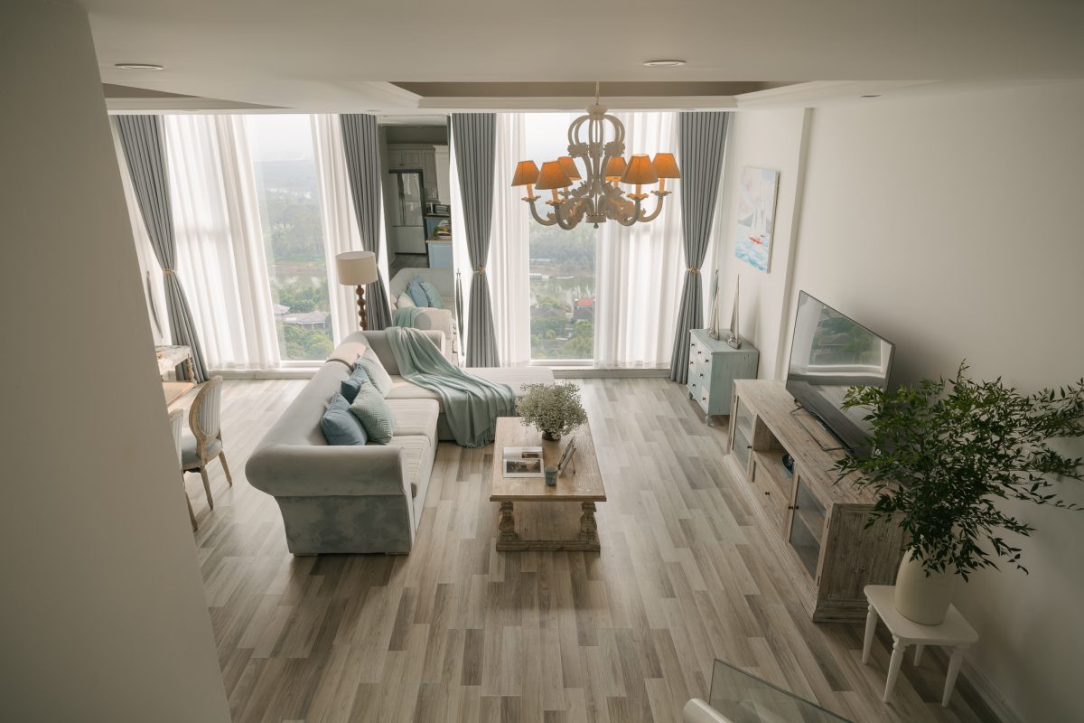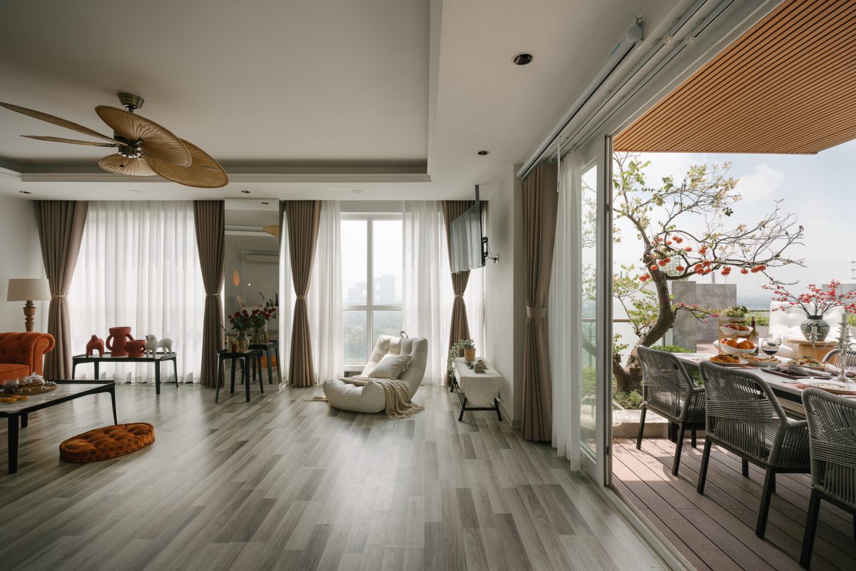 Dự án chú trọng không gian nghỉ dưỡng trên cao — kết hợp phong cách Farmhouse và Scandinavian, mang lại cảm giác ấm áp, tối giản và sang trọng.