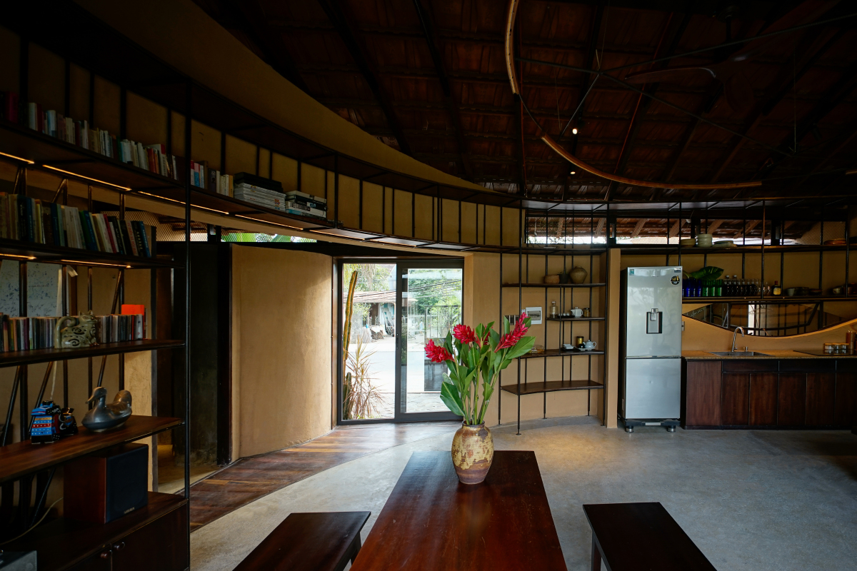 Nội thất chủ yếu sử dụng vật liệu tự nhiên: tre, mây, gỗ, và tái sử dụng từ nhà cũ.