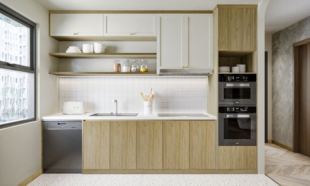 • Thiết bị âm tủ: lò nướng, lò vi sóng, máy rửa chén tùy nhu cầu.