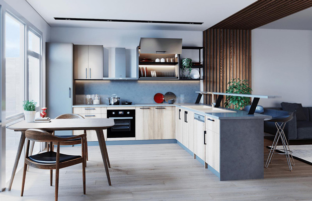 • L-shape: linh hoạt cho căn hộ vừa & nhỏ.